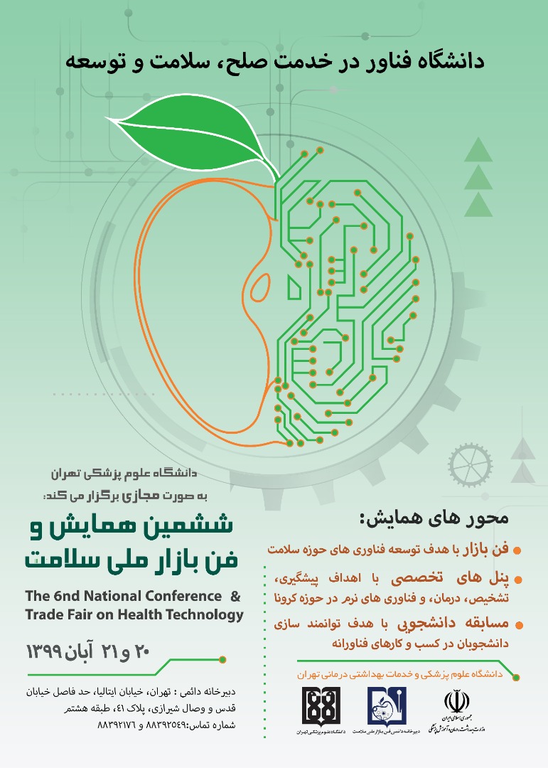 - .ششمین همایش و فن بازار ملی سلامت در تاریخ ۲۰ و ۲۱ آبان ماه ۱۳۹۹ توسط دانشگاه علوم پزشکی تهران برگزار می شود