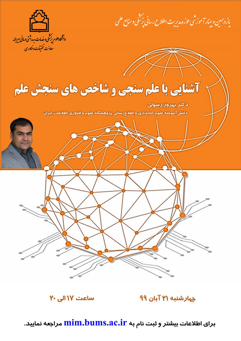 به گزارش مدیر اطلاع رسانی پزشکی و منابع علمی دانشگاه، وبینار آموزشی آشنایی با علم سنجی و شاخص های سنجش علم با تدریس جناب آقای دکتر بهروز رسولی؛ دانش آموخته علوم کتابداری و اطلاع رسانی پژوهشگاه علوم و فناوری اطلاعات ایران روز چهارشنبه ۲۱ آبان ۹۹ از ساعت ۱۷ الی ۲۰ در سطح ملی و به صورت رایگان برگزار خواهد شد.