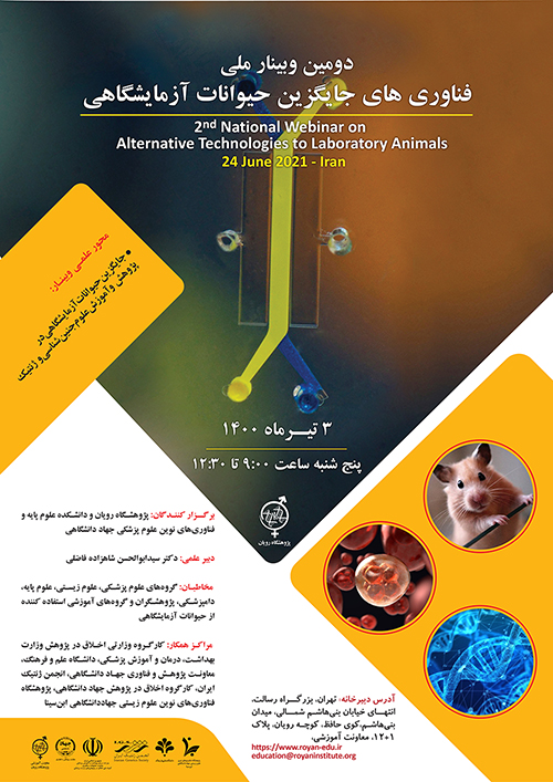 در این راستا «دومین وبینار ملی فناوری های جایگزین حیوانات آزمایشگاهی» به هدف آشنایی جامعه علمی با این فناوری ها توسط «پژوهشگاه رویان با همکاری دانشکده علوم پایه و فناوری های نوین علوم پزشکی جهاد دانشگاهی» برگزار می‌شود.