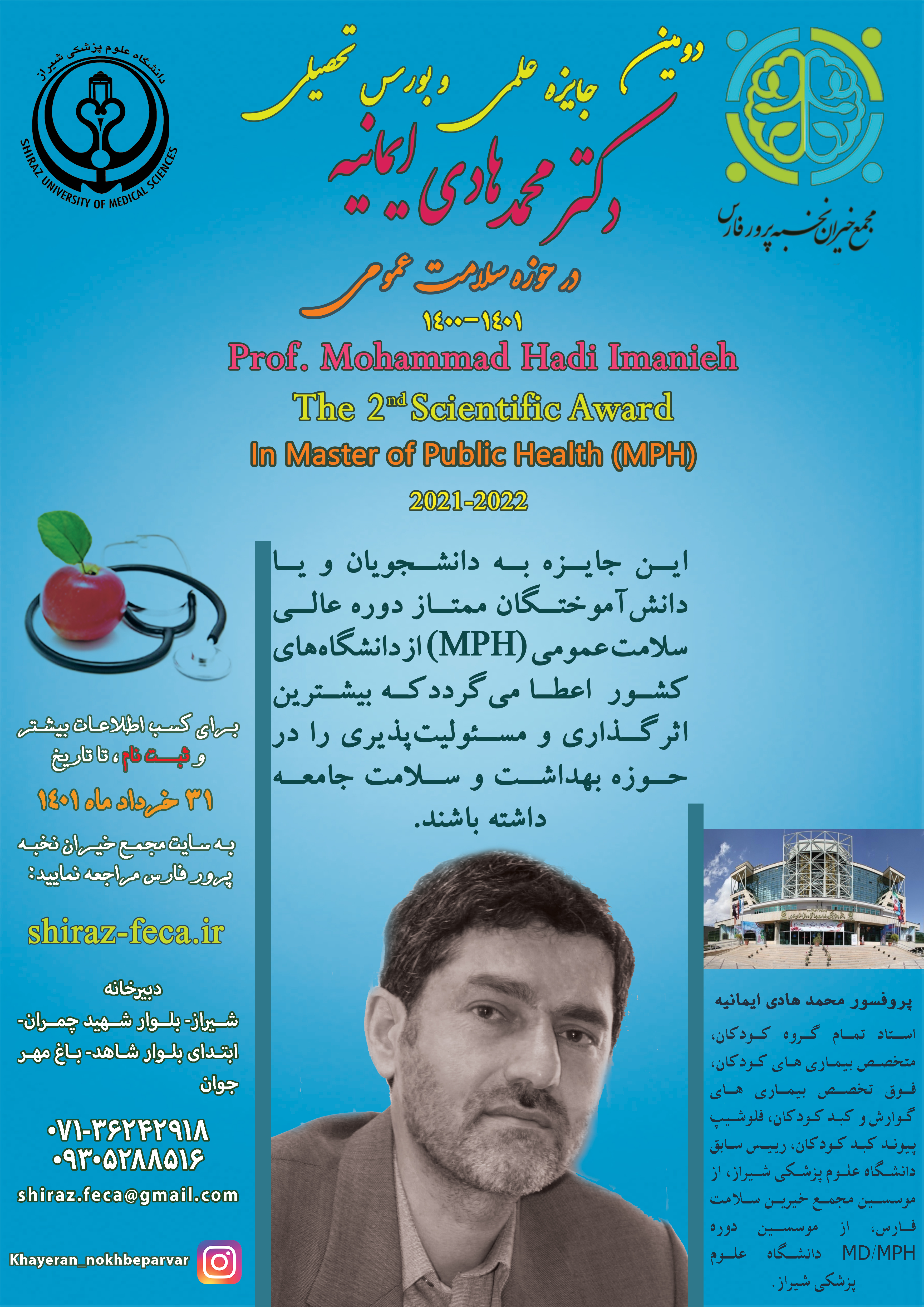 به اطلاع می رساند علاقمندان واجد شرایط جهت ثبت نام و کسب اطلاعات بیشتر به سایت www.shiraz-feca.ir مراجعه نمایند.