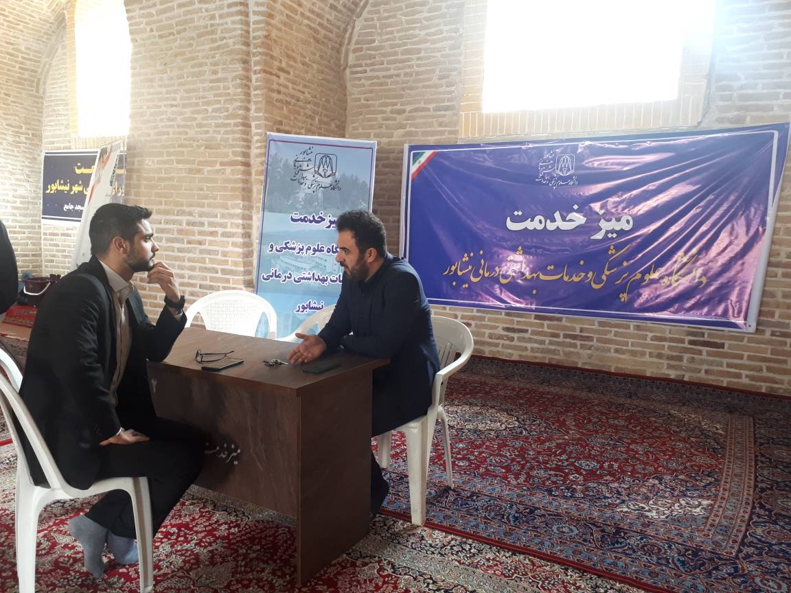 میز خدمت نماز جمعه با حضور مهندس ابراهیم زاده مدیر دفتر توسعه فناوری سلامت معاونت تحقیقات و فناوری دانشگاه علوم پزشکی نیشابور، روز جمعه پنجم اسفند ماه در راستای تکریم و ارتقای رضایت مندی مردم و پاسخ گویی به سوالات و مشکلات نمازگزاران و شهروندان برگزار شد.